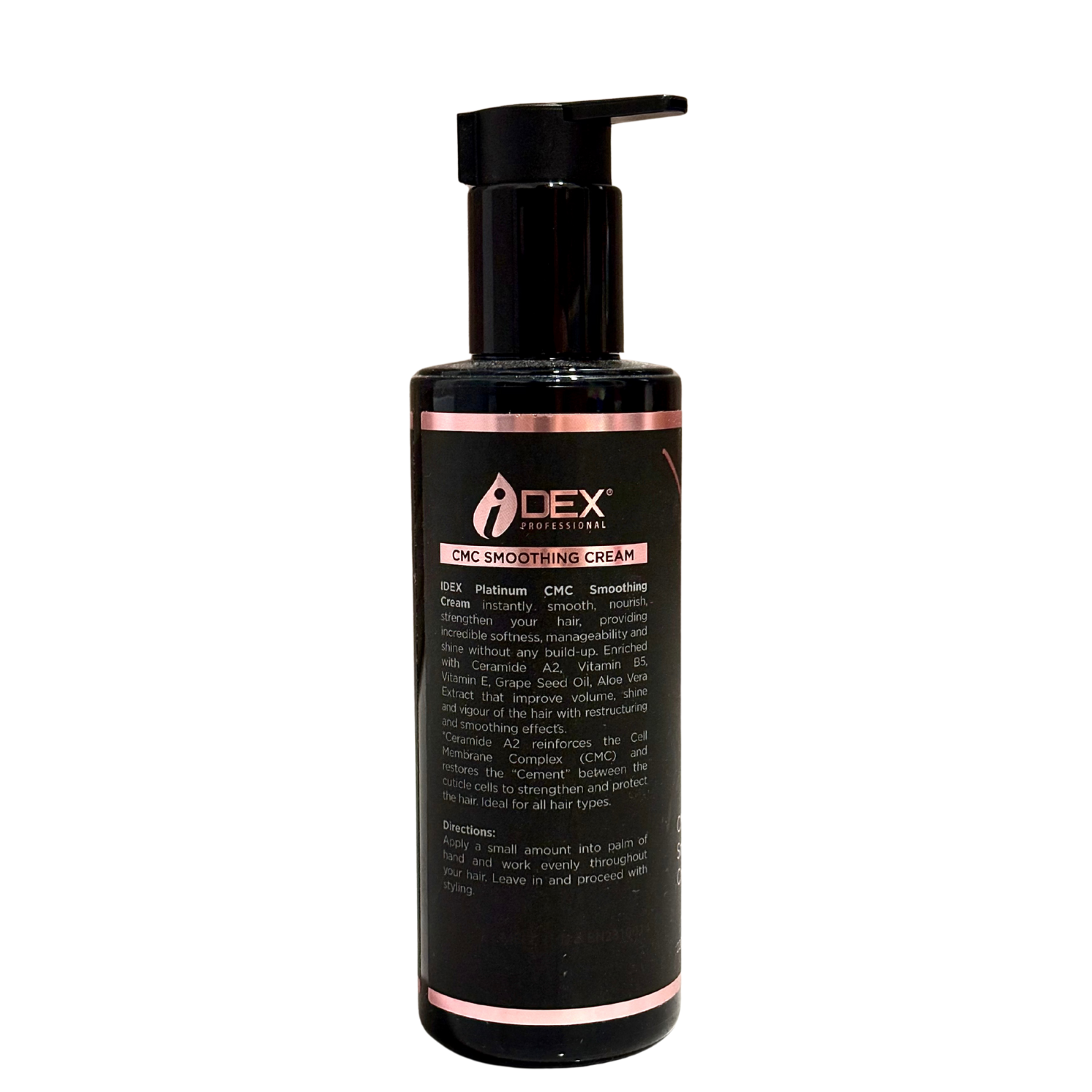 "IDEX PLATINUM CMC SMOOTHING CREAM INSTANTLY SMOOTH, NOURISH, STRENGTHEN YOUR HAIR, PROVIDING INCREDIBLE SOFTNESS, MANAGEABILITY AND SHINE WITHOUT ANY BUILD-UP. ENRICHED WITH CERAMIDE A2, VITAMIN B5, VITAMIN E, GRAPE SEED OIL, ALOE VERA EXTRACT THAT IMPROVE VOLUME, SHINE AND VIGOUR OF THE HAIR WITH RESTRUCTURING AND SMOOTHING EFFECT.