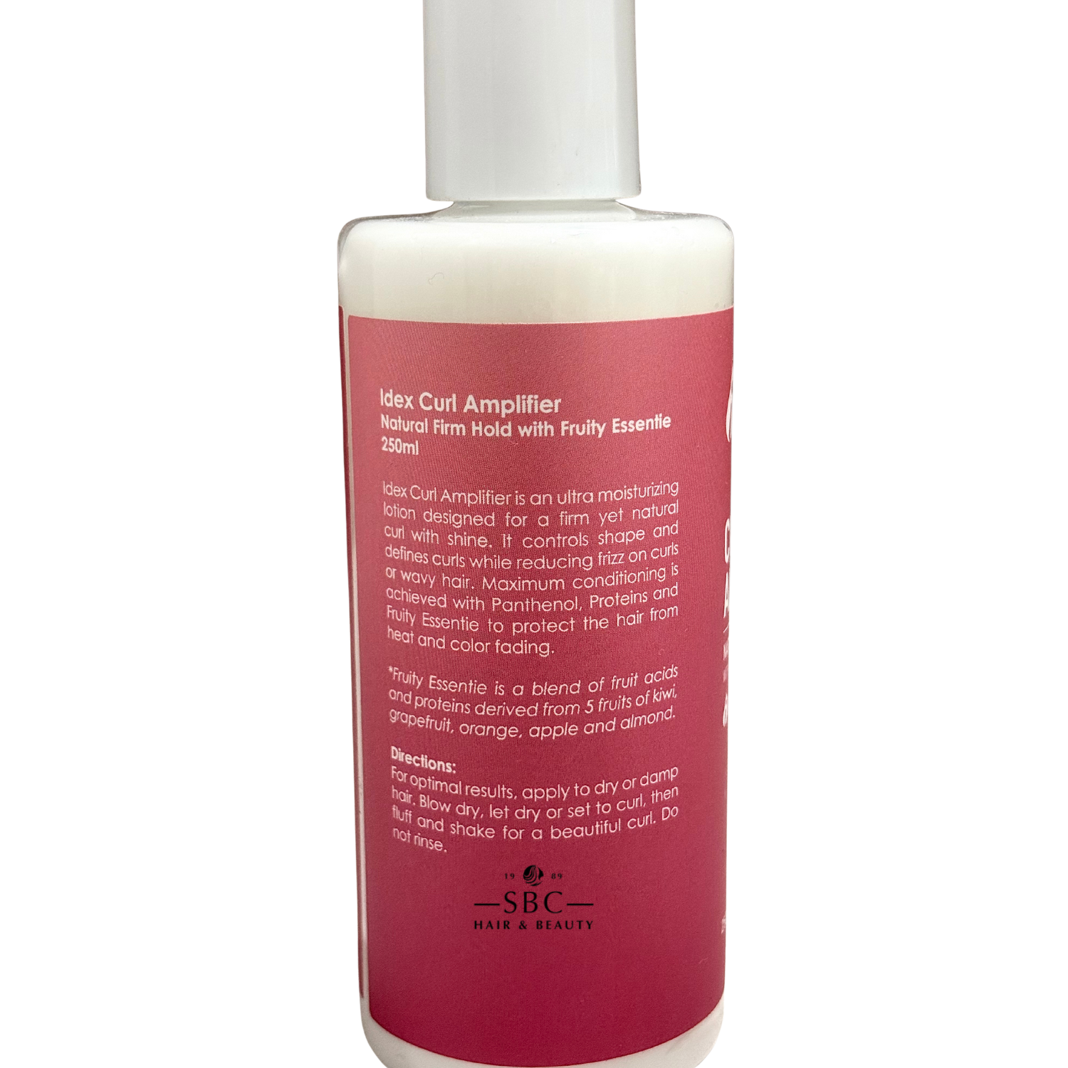 "IDEX CURL AMPLIFIER IS AN ULTRA MOISTURIZING LOTION DESIGNED FOR A FIRM YET NATURAL CURL WITH SHINE. IT CONTROLS SHAPE AND DEFINES CURLS WHILE REDUCING FRIZZ ON CURLS OR WAVY HAIR. MAXIMUM CONDITIONING IS ACHIEVED WITH PANTHENOL. PROTEINS AND FRUITY ESSENTIE TO PROTECT THE HAIR FROM HEAT AND COLOR FADING.